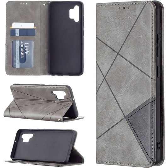 Wil je een Samsung Galaxy A32 4G hoesje met volledige bescherming rondom en een stijlvol en praktisch design? Dan is dit Mobigear Rhombus Slim bookcase hoesje voor Samsung Galaxy A32 4G de perfecte keuze. Het booktype hoesje is gemaakt van hoogwaardig kunstleer en uitgevoerd in de kleur grijs. Met een boek hoesje is je Samsung Galaxy A32 4G rondom goed beschermd, inclusief het kwetsbare scherm. De voorklep opent opzij als een boek en sluit stevig met een magnetische sluiting. Er is ruimte voor 2 pasjes zodat je altijd je bankpas of ID bij de hand hebt.