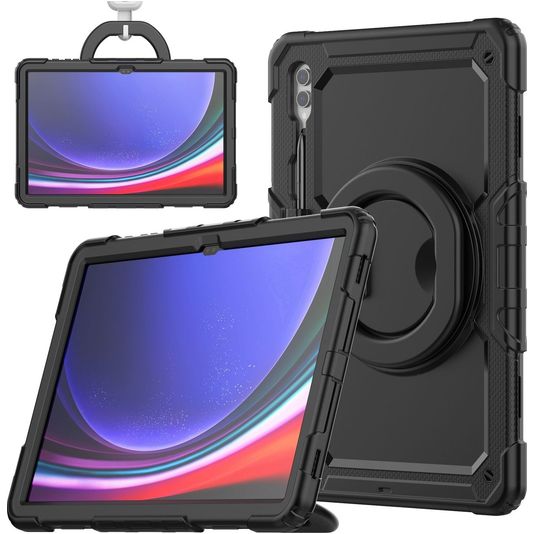 Mobigear RingGuard Samsung Galaxy Tab S10 Ultra Hoes Hard Kunststof,Siliconen Backcover + Stylus Houder + Schouderband + Standaard - Zwart