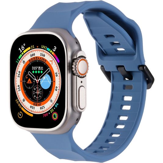 Mobigear Ripple Siliconen Apple Watch Bandje Gespsluiting - 49/46/45/44 mm - Blauw