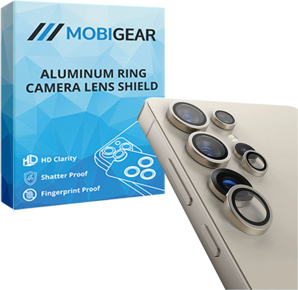 Met alleen een screenprotector is de bescherming van je Samsung Galaxy S25 Ultra niet compleet. Met deze Mobigear camera lens protector kun je ook gebruik maken van een hoesje. De camera lens protector zit een hoesje niet in de weg en sluit perfect aan voor een complete bescherming van jouw Samsung Galaxy S25 Ultra.