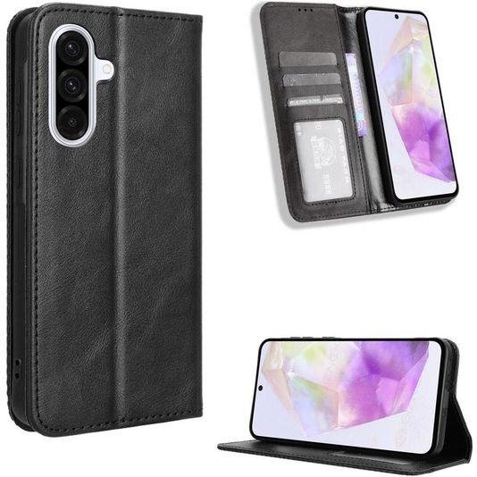 Ben je op zoek naar een stijlvol, klassiek en tijdloos Samsung Galaxy A56 hoesje? Deze zwarte Mobigear Sensation bookcase is gemaakt van hoogwaardig kunstleer en de perfecte optie voor zowel zakelijk als vrije tijd. In de zwarte uitvoering geeft het Mobigear Sensation bookcase hoesje jouw toestel een klassieke neutrale look. Je Samsung Galaxy A56 is bovendien rondom goed beschermd. Er is ruimte voor 3 pasjes zodat je altijd je bankpas of ID bij de hand hebt.