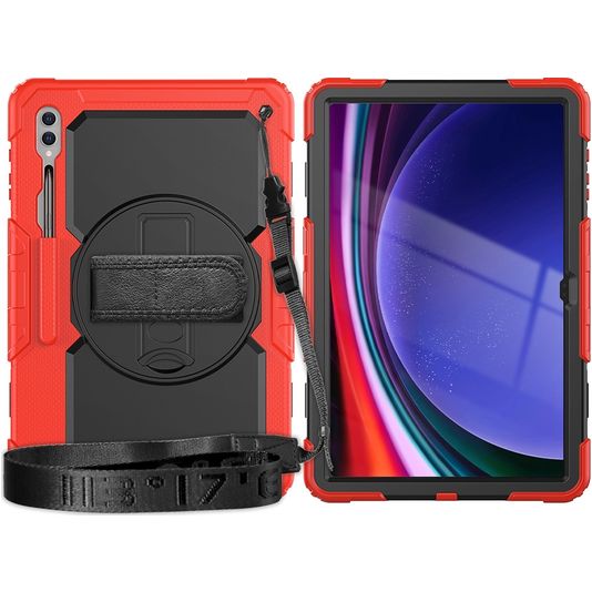Mobigear SureGrip Xtreme Samsung Galaxy Tab S9 Ultra Hoes Hard Kunststof,Siliconen Backcover + Schouderband + Standaard - Zwart / Rood