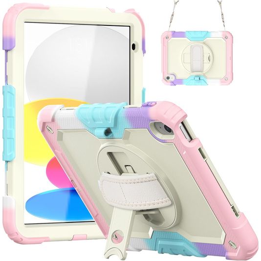 Mobigear SureGrip Xtreme iPad 10 (2022) Hoes Hard Kunststof,Siliconen Backcover + Schouderband + Standaard - Rainbow