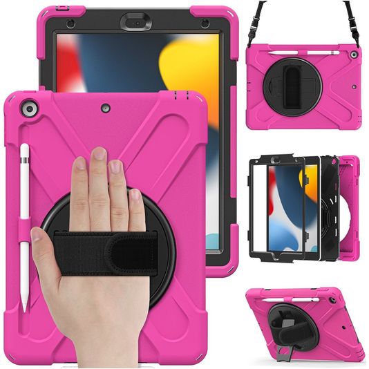 Mobigear SureGrip XGuard iPad 7 (2019) Hoes Hard Kunststof,Siliconen Backcover + Stylus Houder + Schouderband + Standaard - Roze