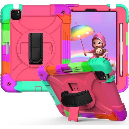 Mobigear SureGrip Xtreme iPad Air 4 (2020) Hoes Hard Kunststof,Siliconen Backcover + Stylus Houder + Schouderband + Standaard - Turquoise / Magenta