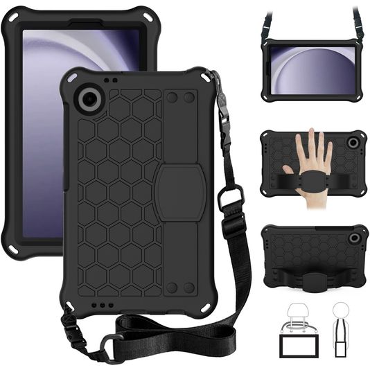 Mobigear HexStrap Samsung Galaxy Tab A9 (2023) Hoes EVA Schuim Backcover + Schouderband - Zwart