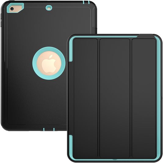 Laat jij je Apple iPad 5 (2017) regelmatig vallen of wordt deze gebruikt door kinderen? Dan is de Mobigear Tri-Fold Folio bookcase de ideale keuze voor jou! Met de Tri-Fold Folio bookcase van Mobigear ben je verzekerd van de beste bescherming van jouw Apple iPad 5 (2017). De Tri-Fold Folio bookcase is uitgevoerd in de kleur zwart / turquoise en gemaakt van extra stevig stevig kunststof. Het ontwerp met dikke randen, zorgt ervoor dat je tablet tegen een stootje kan.