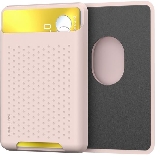 De Mobigear Pocket MagSafe-compatible kaarthouder is verkrijgbaar in de kleur roze en is gemaakt van luxe flexibel siliconen kunststof.