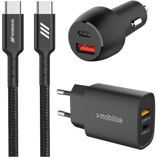 Mobigear Essentials Oplader + Autolader + USB-C Kabel 1 Meter Power Delivery 48W - Zwart