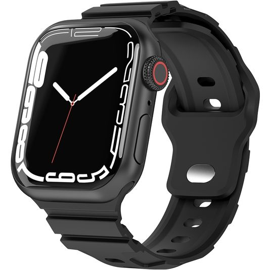 Mobigear Sport Armor Siliconen Apple Watch Bandje Druksluiting - 42/41/40/38 mm - Zwart