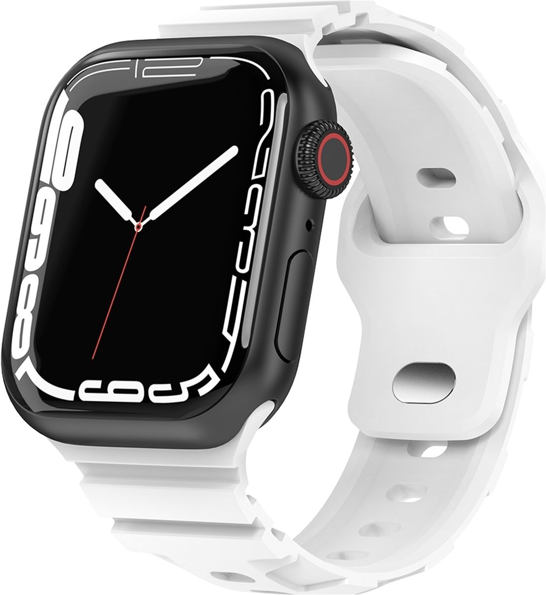 Mobigear Sport Armor Siliconen Apple Watch Bandje Druksluiting - 49/46/45/44 mm - Wit