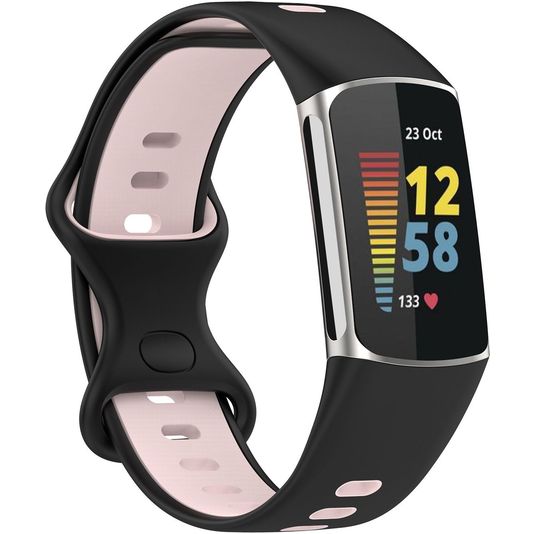 Mobigear Sport Dual Siliconen Fitbit Charge 5 Bandje Druksluiting - Zwart / Roze
