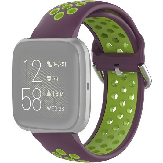 Mobigear Sport Plus Buckle Siliconen Fitbit Versa 2 Bandje Gespsluiting - Groen / Paars