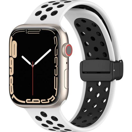 Mobigear Sport Plus Mag Siliconen Apple Watch Bandje Magneetsluiting - 42/41/40/38 mm - Zwart / Wit