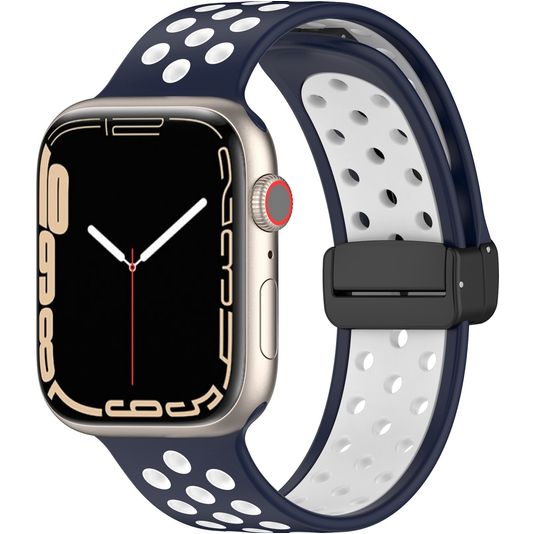 Mobigear Sport Plus Mag Siliconen Apple Watch Bandje Magneetsluiting - 49/46/45/44 mm - Zwart / Marineblauw