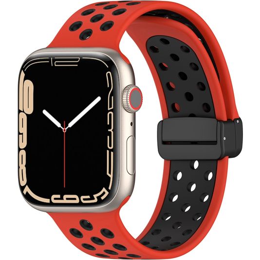 Mobigear Sport Plus Mag Siliconen Apple Watch Bandje Magneetsluiting - 49/46/45/44 mm - Zwart / Rood