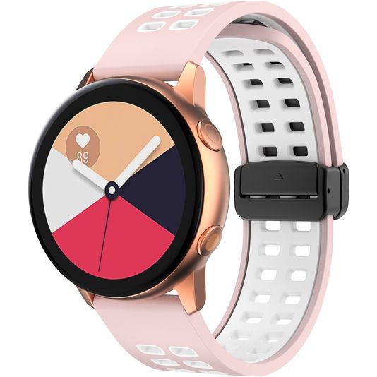 Mobigear Sport Plus Mag Siliconen Smartwatch Bandje Magneetsluiting - Universeel 22 mm connector - Wit / Roze