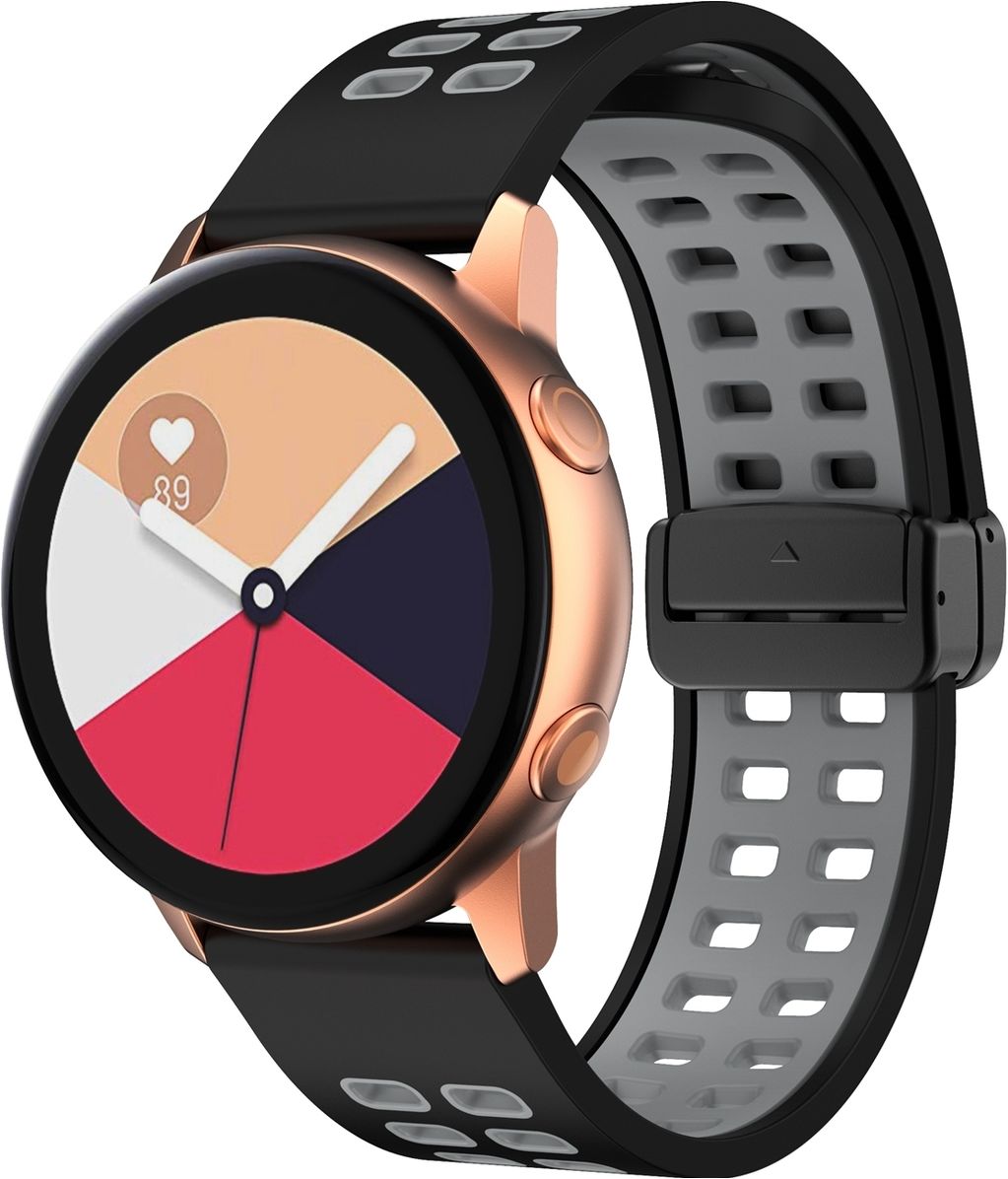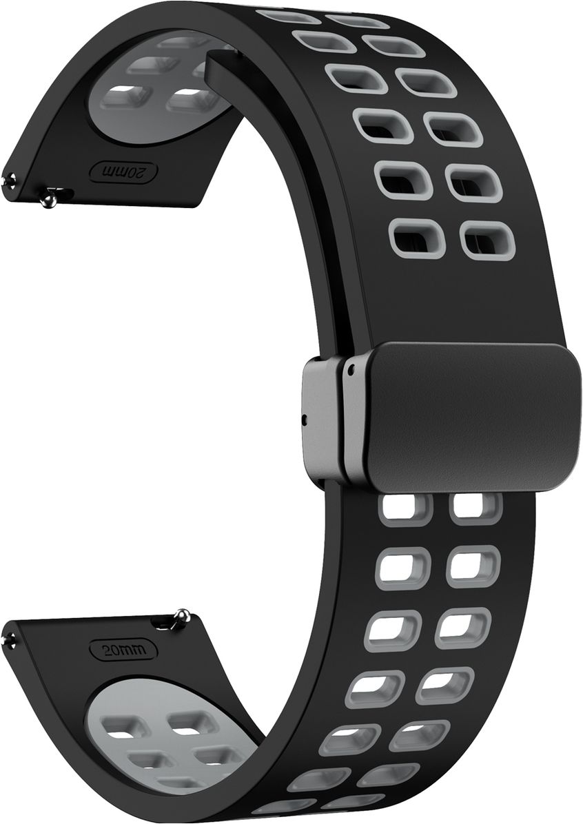 Mobigear Sport Plus Mag Siliconen Smartwatch Bandje Magneetsluiting - Universeel 22 mm connector - Zwart / Grijs