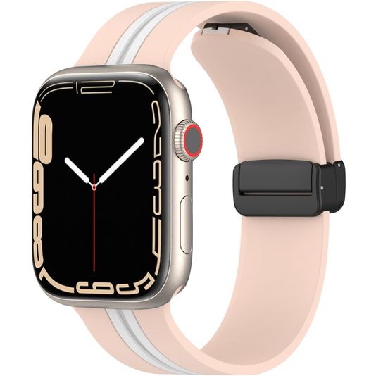Mobigear Stripe Mag Siliconen Apple Watch Bandje Magneetsluiting - 42/41/40/38 mm - Wit / Roze