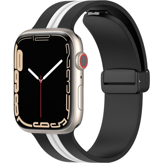 Mobigear Stripe Mag Siliconen Apple Watch Bandje Magneetsluiting - 42/41/40/38 mm - Zwart / Wit