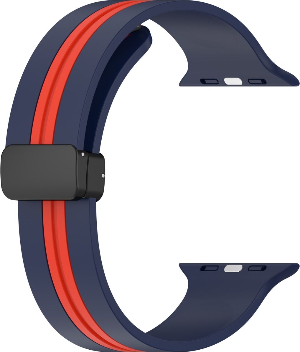 Mobigear Stripe Mag Siliconen Apple Watch Bandje Magneetsluiting - 49/46/45/44 mm - Rood / Marineblauw