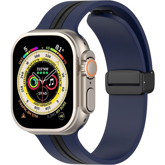 Mobigear Stripe Mag Siliconen Apple Watch Bandje Magneetsluiting - 49/46/45/44 mm - Zwart / Donkerblauw
