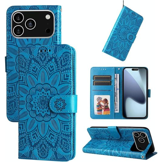 Mobigear Sunflower iPhone 17 Pro Hoesje Bookcase Portemonnee - Blauw