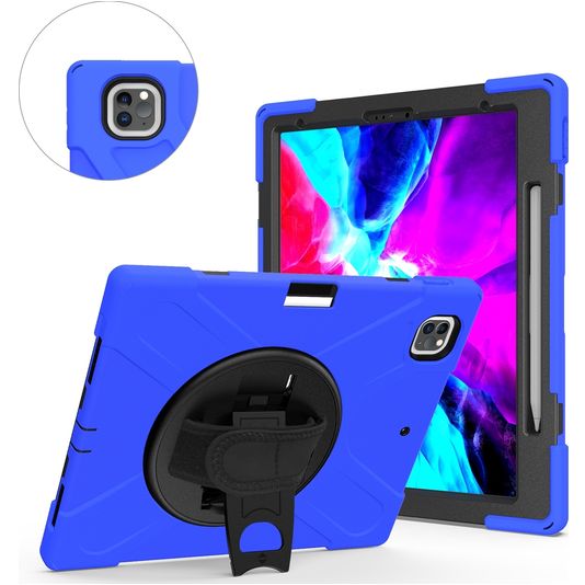 Mobigear SureGrip XGuard iPad Pro 13 Inch (2025) Hoes Hard Kunststof,Siliconen Backcover + Stylus Houder + Schouderband + Standaard - Blauw