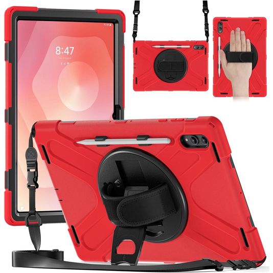 Mobigear SureGrip XGuard Samsung Galaxy Tab S11 Ultra Hoes Hard Kunststof,Siliconen + Stylus Houder + Schouderband - Rood