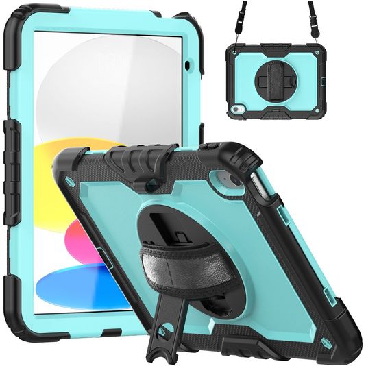 Mobigear SureGrip Xtreme iPad 11 (2025) Hoes Hard Kunststof,Siliconen Backcover + Schouderband + Standaard - Zwart / Blauw