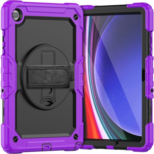 Mobigear SureGrip Xtreme Samsung Galaxy Tab A9 Plus (2023) Hoes Hard Kunststof,Siliconen Backcover + Schouderband + Standaard - Paars