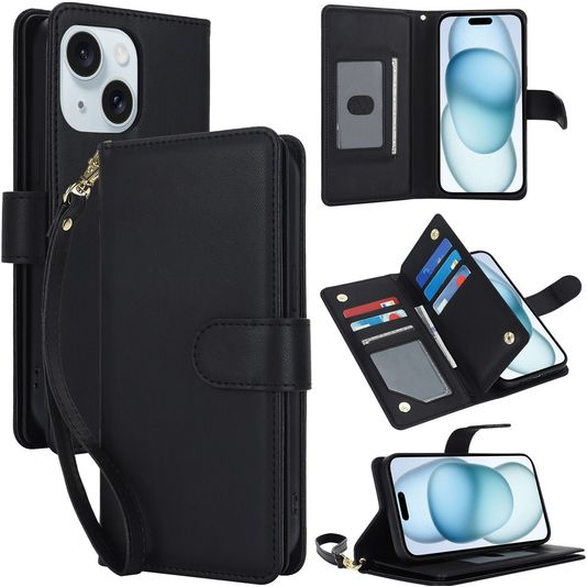 Mobigear Wallet iPhone 15 Plus Hoesje Bookcase Portemonnee - Zwart