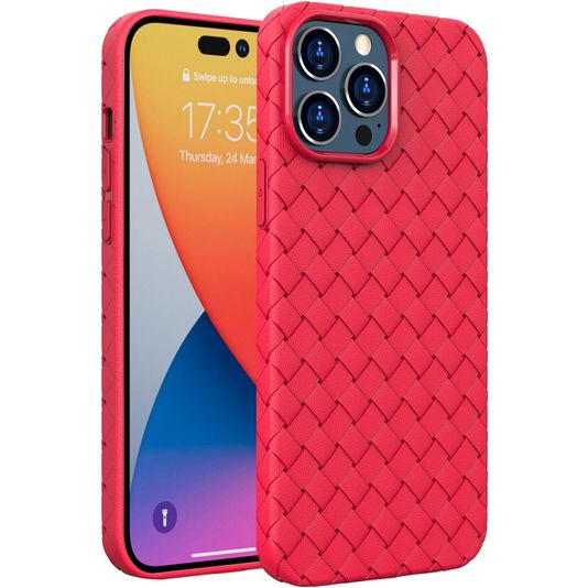 De Mobigear Woven Apple iPhone 14 Pro Max backcover in de kleur rood biedt uitstekende bescherming van je telefoon. Het hoesje is gemaakt van flexibel TPU kunststof, wat zorgt voor optimale bescherming bij schokken en stoten. Het backcover hoesje bedekt de achter- en zijkant van je telefoon en houdt het scherm vrij, zodat je altijd direct toegang hebt.