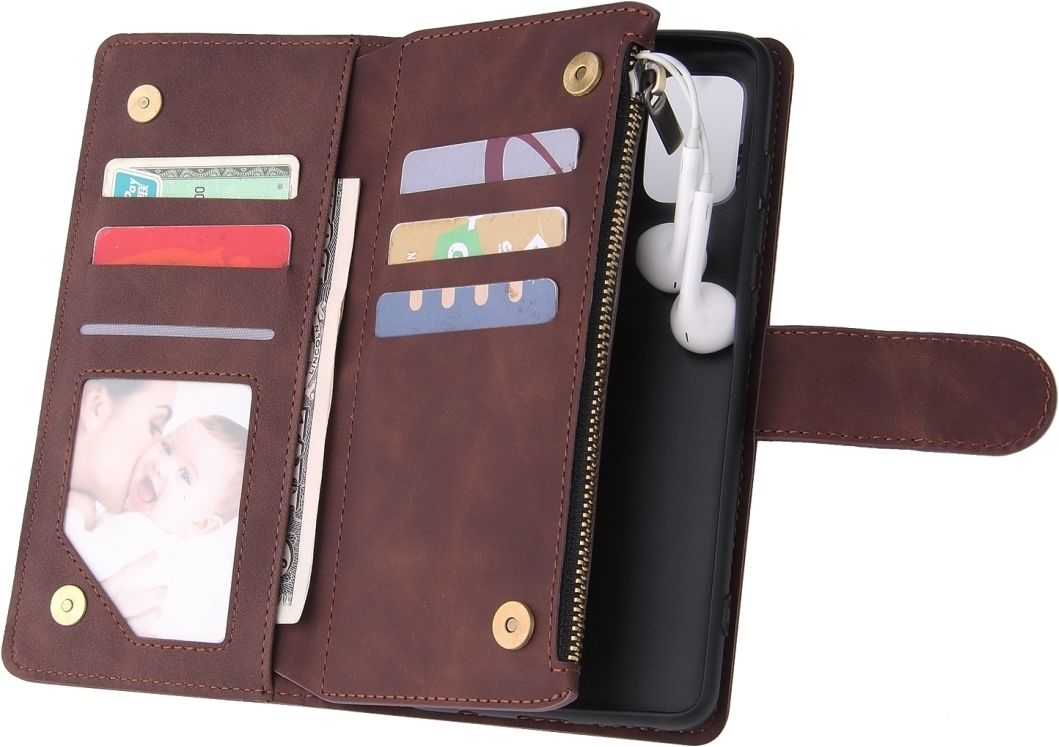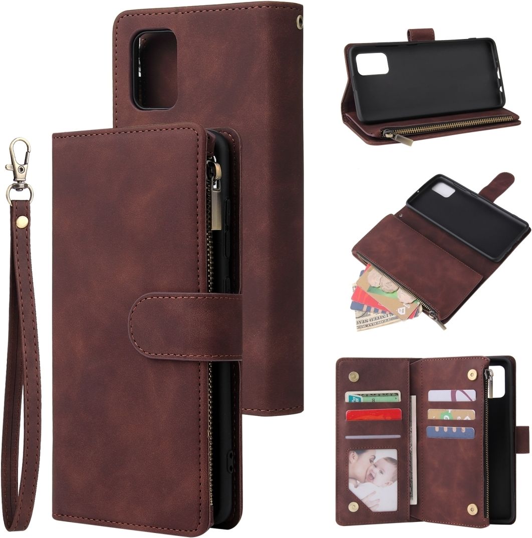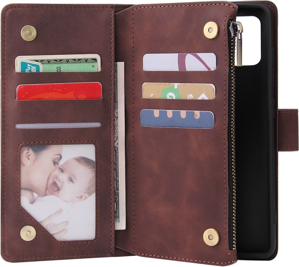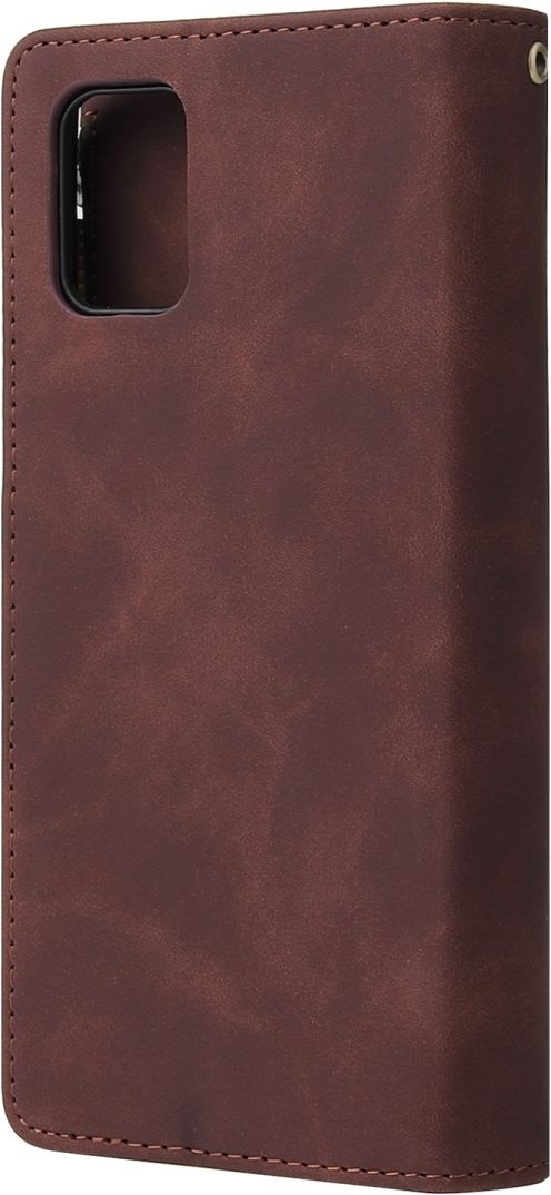 Wil je een Samsung Galaxy A51 hoesje met volledige bescherming rondom en een stijlvol en praktisch design? Dan is dit Mobigear Zipper bookcase hoesje voor Samsung Galaxy A51 de perfecte keuze. Het booktype hoesje is gemaakt van hoogwaardig kunstleer en uitgevoerd in de kleur bruin. Met een boek hoesje is je Samsung Galaxy A51 rondom goed beschermd, inclusief het kwetsbare scherm. De voorklep opent opzij als een boek en sluit stevig met een magnetische sluiting. Er is ruimte voor 6 pasjes zodat je altijd je bankpas of ID bij de hand hebt.