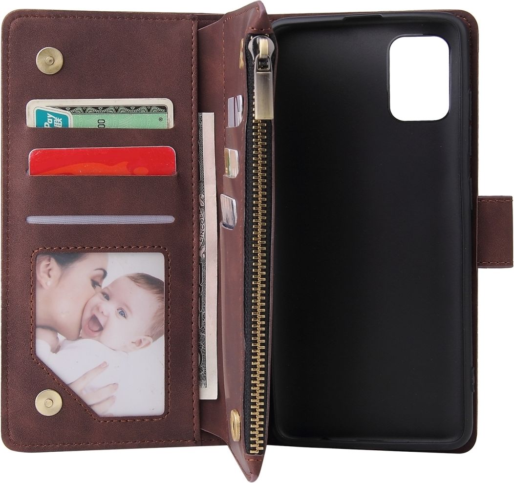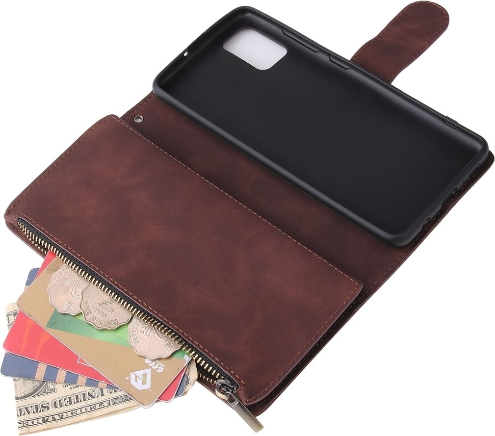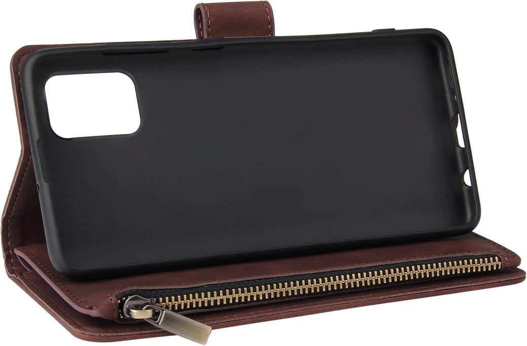 Mobigear Zipper Samsung Galaxy A51 Hoesje Bookcase Portemonnee - Bruin