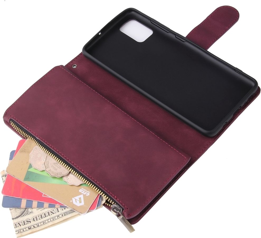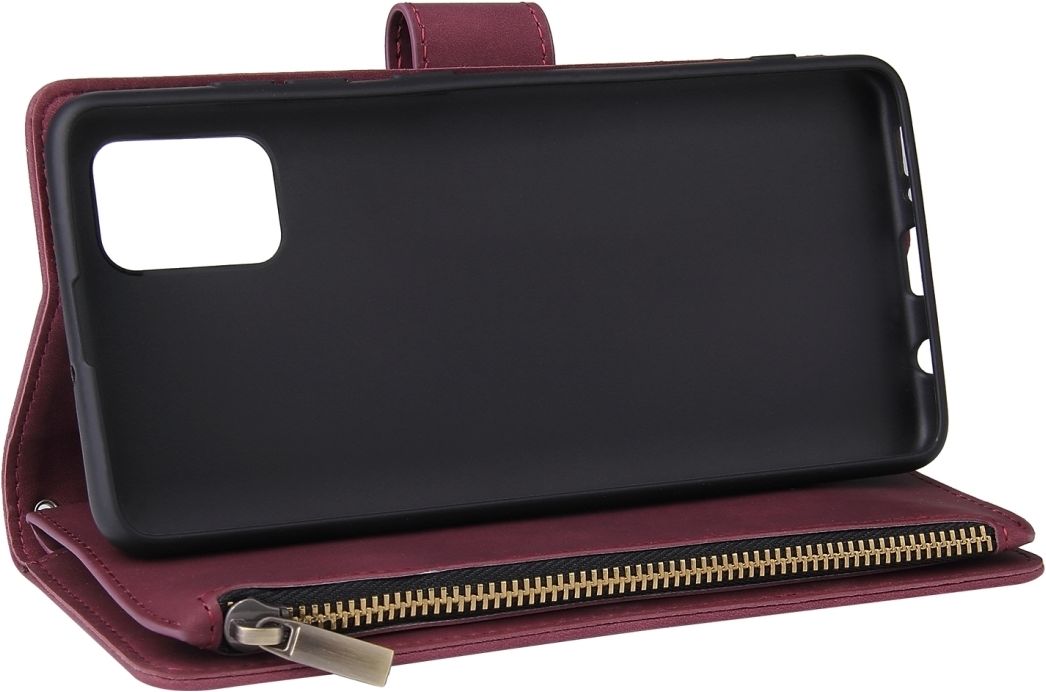 Mobigear Zipper Samsung Galaxy A51 Hoesje Bookcase Portemonnee - Rood