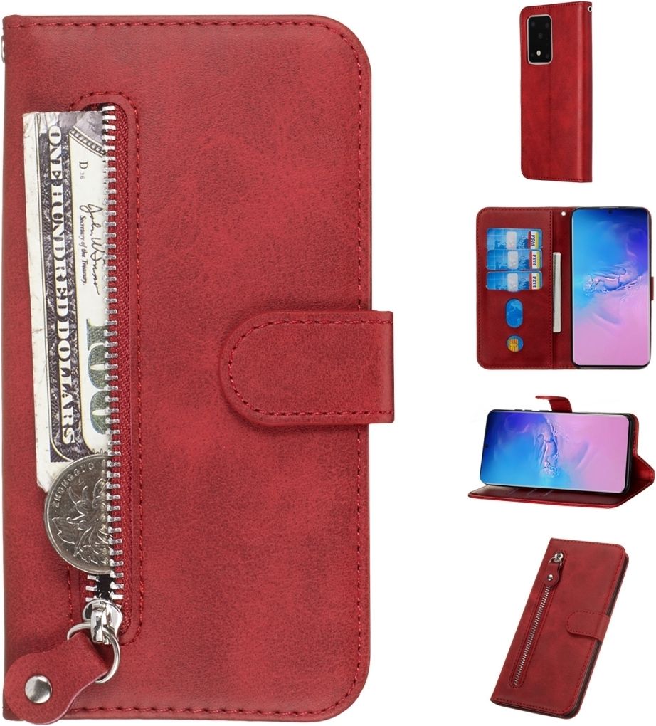 Mobigear Zipper Samsung Galaxy S20 Ultra Hoesje Bookcase Portemonnee - Rood