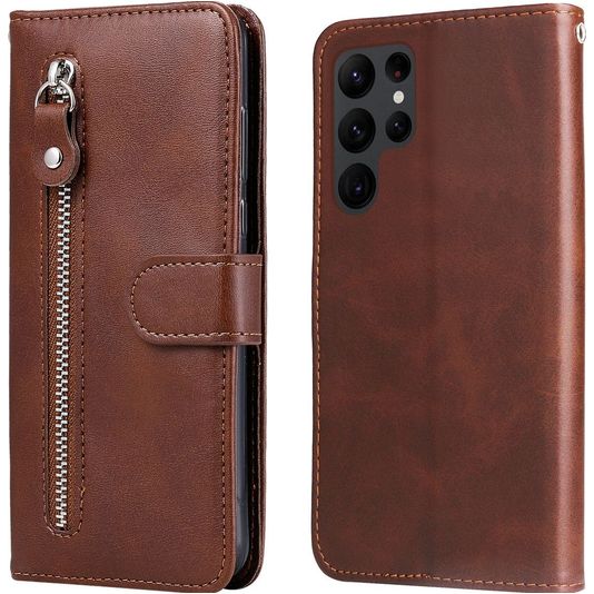 Wil je een Samsung Galaxy S23 Ultra hoesje met volledige bescherming rondom en een stijlvol en praktisch design? Dan is dit Mobigear Zipper bookcase hoesje voor Samsung Galaxy S23 Ultra de perfecte keuze. Het booktype hoesje is gemaakt van hoogwaardig kunstleer en uitgevoerd in de kleur bruin. Met een boek hoesje is je Samsung Galaxy S23 Ultra rondom goed beschermd, inclusief het kwetsbare scherm. De voorklep opent opzij als een boek en sluit stevig met een magnetische sluiting. Er is ruimte voor 3 pasjes zodat je altijd je bankpas of ID bij de hand hebt.