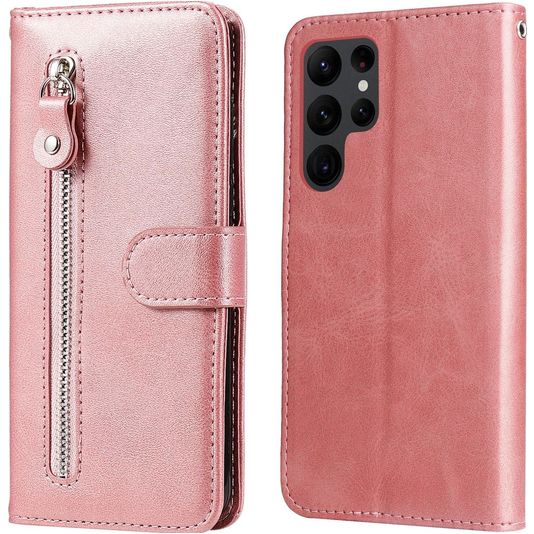 Wil je een Samsung Galaxy S23 Ultra hoesje met volledige bescherming rondom en een stijlvol en praktisch design? Dan is dit Mobigear Zipper bookcase hoesje voor Samsung Galaxy S23 Ultra de perfecte keuze. Het booktype hoesje is gemaakt van hoogwaardig kunstleer en uitgevoerd in de kleur roségoud. Met een boek hoesje is je Samsung Galaxy S23 Ultra rondom goed beschermd, inclusief het kwetsbare scherm. De voorklep opent opzij als een boek en sluit stevig met een magnetische sluiting. Er is ruimte voor 3 pasjes zodat je altijd je bankpas of ID bij de hand hebt.