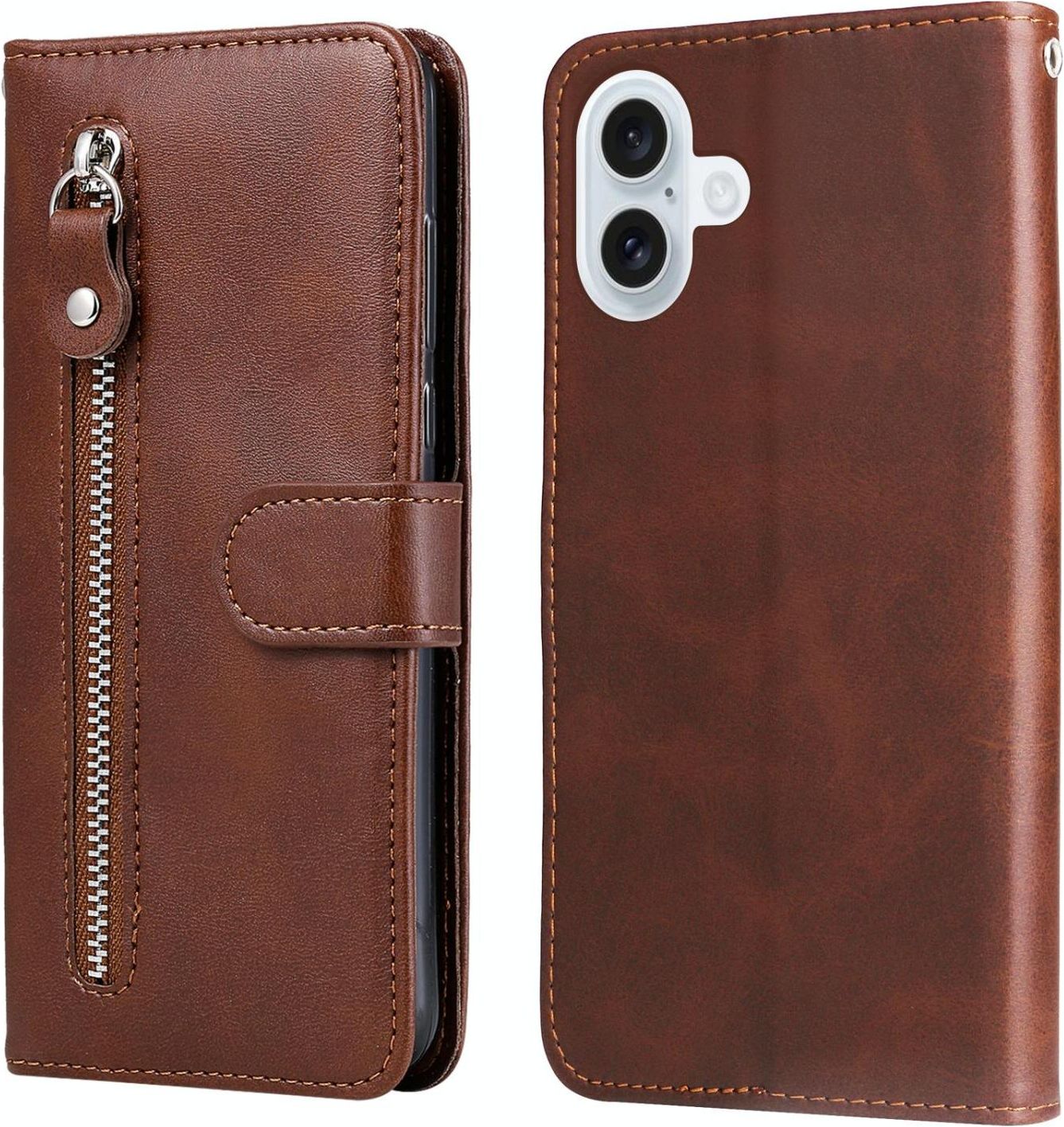 Mobigear Zipper iPhone 17 Hoesje Bookcase Portemonnee - Bruin