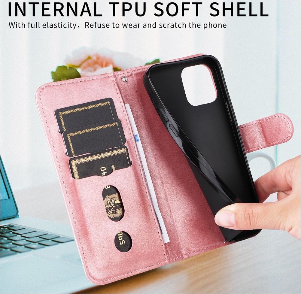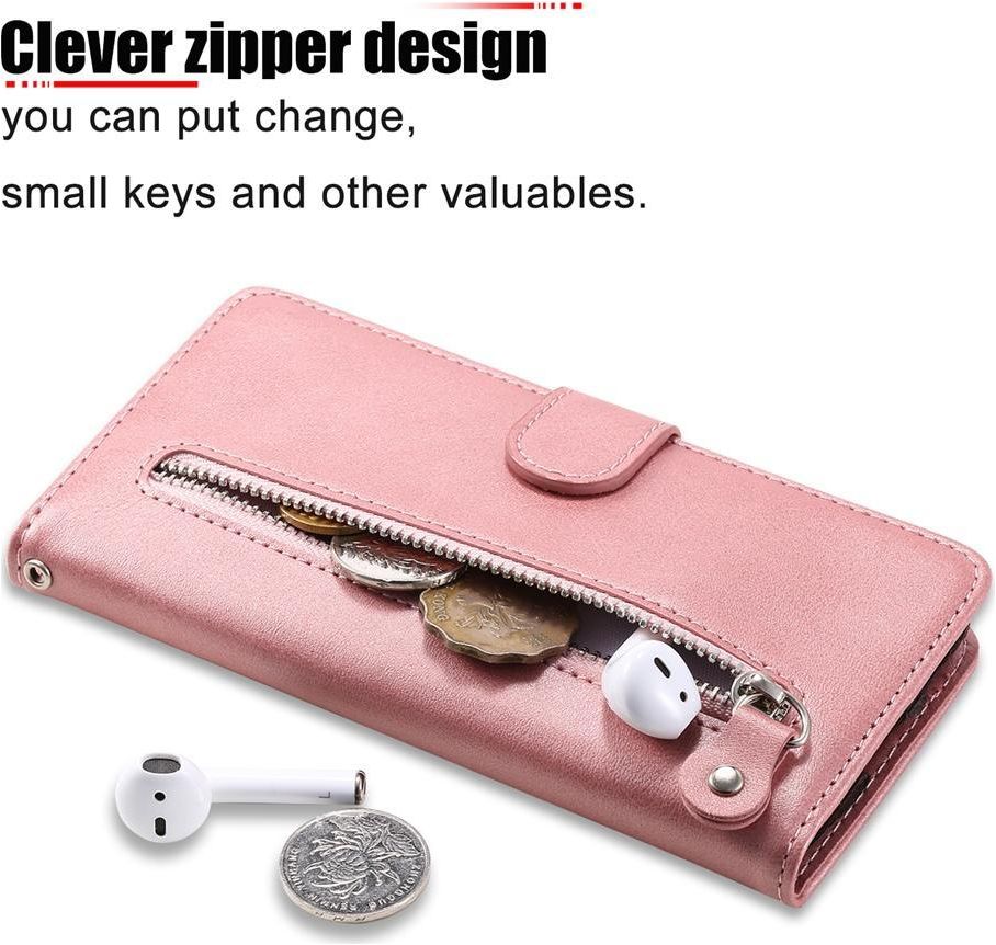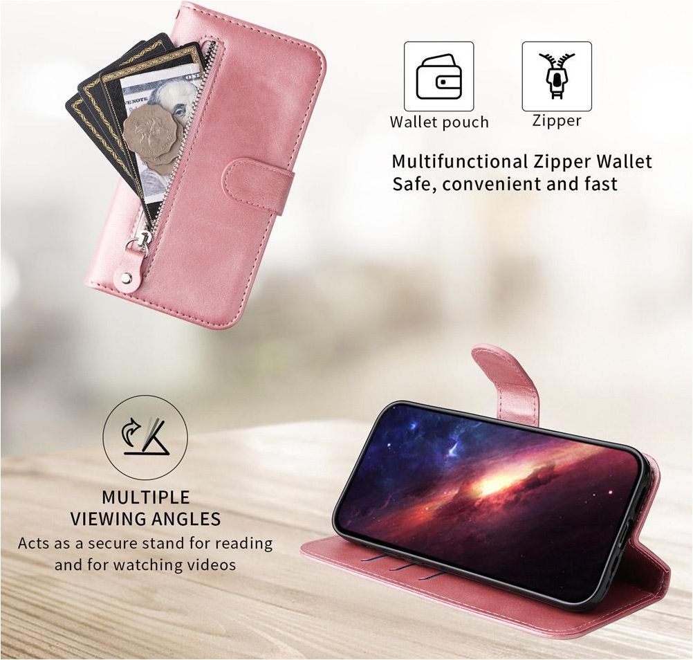 Wil je een Apple iPhone 17 hoesje met volledige bescherming rondom en een stijlvol en praktisch design? Dan is dit Mobigear Zipper bookcase hoesje voor Apple iPhone 17 de perfecte keuze. Het booktype hoesje is gemaakt van hoogwaardig kunstleer en uitgevoerd in de kleur roségoud. Met een boek hoesje is je Apple iPhone 17 rondom goed beschermd, inclusief het kwetsbare scherm. De voorklep opent opzij als een boek en sluit stevig met een magnetische sluiting. Er is ruimte voor 3 pasjes zodat je altijd je bankpas of ID bij de hand hebt.