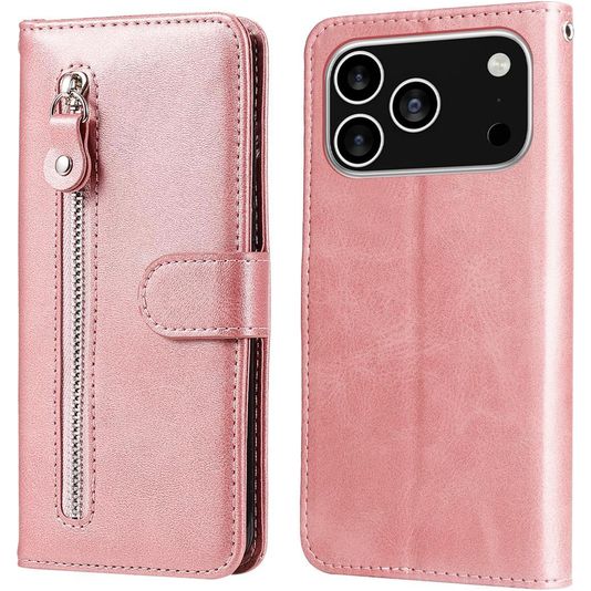 Mobigear Zipper iPhone 17 Pro Hoesje Bookcase Portemonnee - Roségoud