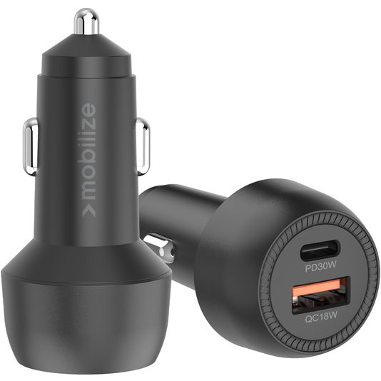 Mobilize Dual USB / USB-C Autolader Power Delivery 48W - Zwart