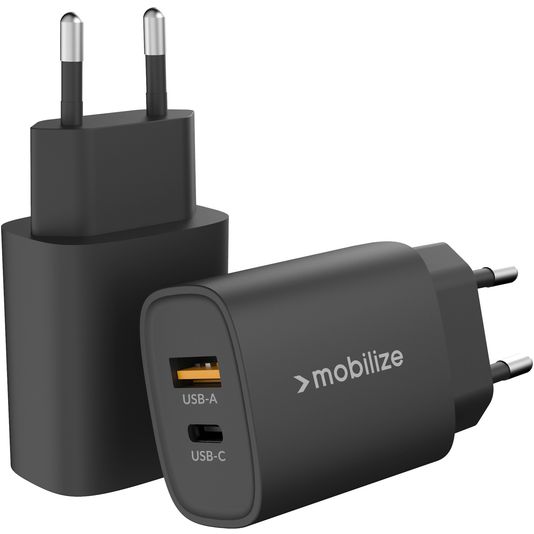 Mobilize Dual USB / USB-C Oplader Power Delivery 25W - Zwart