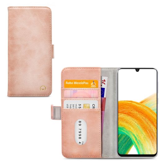 Wil je een Samsung Galaxy A33 hoesje met volledige bescherming rondom en een stijlvol en praktisch design? Dan is dit Mobilize Elite Gelly bookcase hoesje voor Samsung Galaxy A33 de perfecte keuze. Het booktype hoesje is gemaakt van hoogwaardig kunstleer en uitgevoerd in de kleur soft pink. Met een boek hoesje is je Samsung Galaxy A33 rondom goed beschermd, inclusief het kwetsbare scherm. De voorklep opent opzij als een boek en sluit stevig met een magnetische sluiting. Er is ruimte voor 3 pasjes zodat je altijd je bankpas of ID bij de hand hebt.