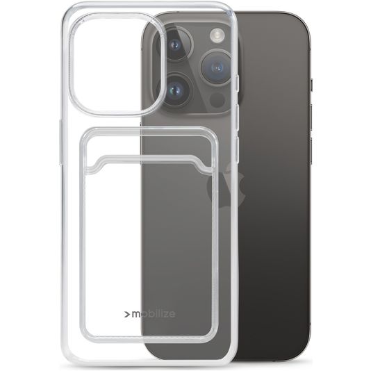 Mobilize Gelly Card Doorzichtig iPhone 14 Pro Hoesje Flexibel TPU Backcover met Pasjeshouder - Transparant