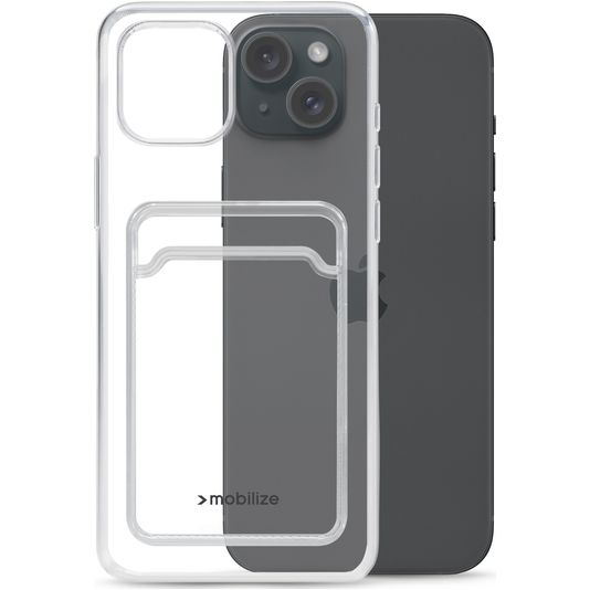 Mobilize Gelly Card Doorzichtig iPhone 15 Plus Hoesje Flexibel TPU Backcover met Pasjeshouder - Transparant
