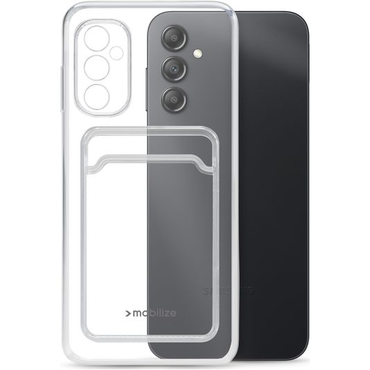 Vergeet je altijd je pasjes mee te nemen? Kies dan voor dit Mobilize Gelly Card Samsung Galaxy A34 hoesje voor met ingebouwde pasjeshouder. In het hoesje is ruimte om 1 pasje op te bergen. Ideaal voor bijvoorbeeld je bankpas, ID of OV kaart. Het Mobilize hoesje is gemaakt van transparant flexibel TPU kunststof en bedekt de achter- en zijkant van jouw Samsung Galaxy A34.
