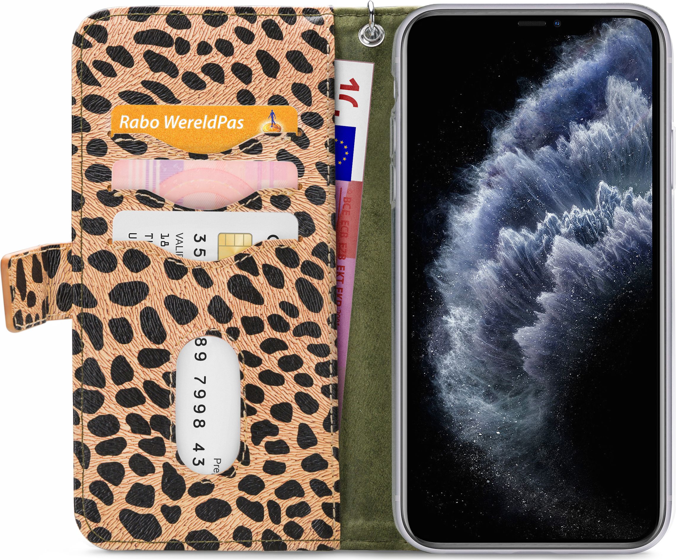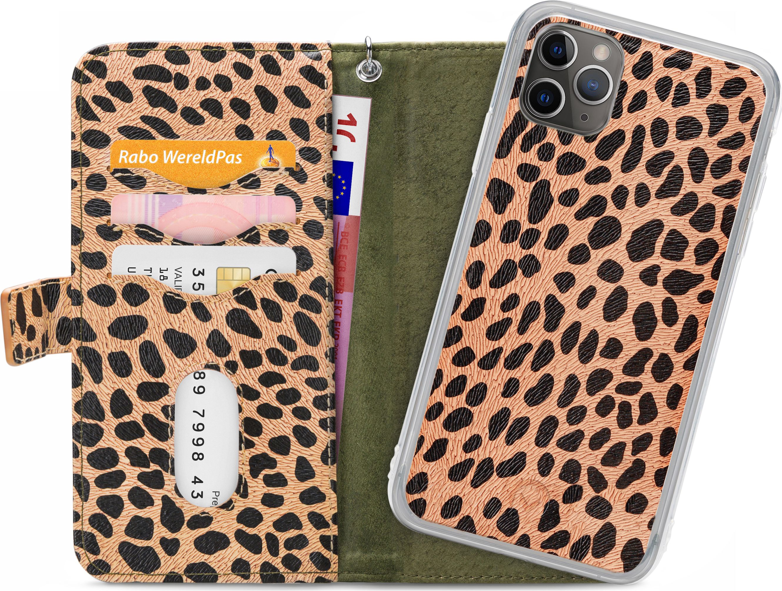 Combineer de stijl en bescherming van een Apple iPhone 11 Pro Max clutch en de handzaamheid van een backcover met de Apple iPhone 11 Pro Max Gelly Zipper 2in1 clutch van Mobilize in de uitvoering leopard. Het backcover hoesje zit met een magneet vast in de clutch en kan desgewenst ook apart gebruikt worden.