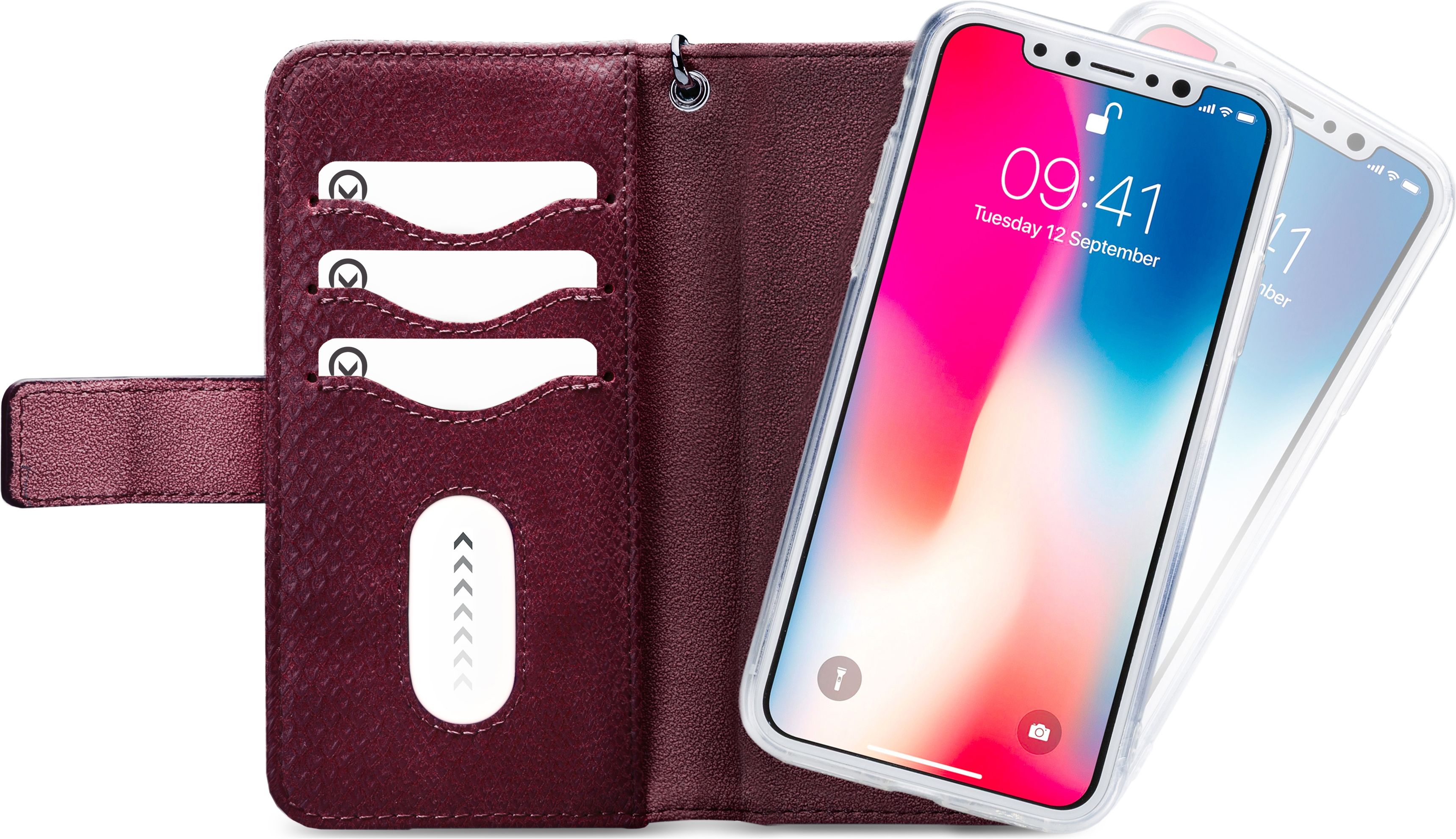 Combineer de stijl en bescherming van een Apple iPhone XS Max clutch en de handzaamheid van een backcover met de Apple iPhone XS Max Gelly Zipper 2in1 clutch van Mobilize in de uitvoering bordeaux. Het backcover hoesje zit met een magneet vast in de clutch en kan desgewenst ook apart gebruikt worden.